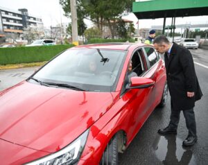 Kontrol noktasında durdurulan araçların trafik kurallarına uyumları noktasında denetimlere katılan
