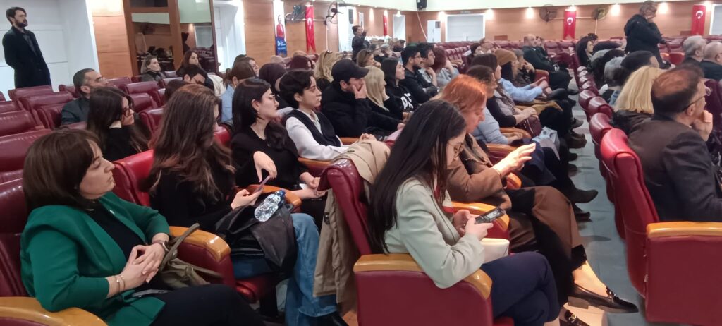 Konuşmaların tamamlanmasının ardından, Can Atalay’ın yaşamını ve hukuk mücadelesini konu alan belgesel gösterimine geçildi. Yaklaşık 1,5 saat süren gösterim, katılımcılar tarafından dikkatle izlendi.